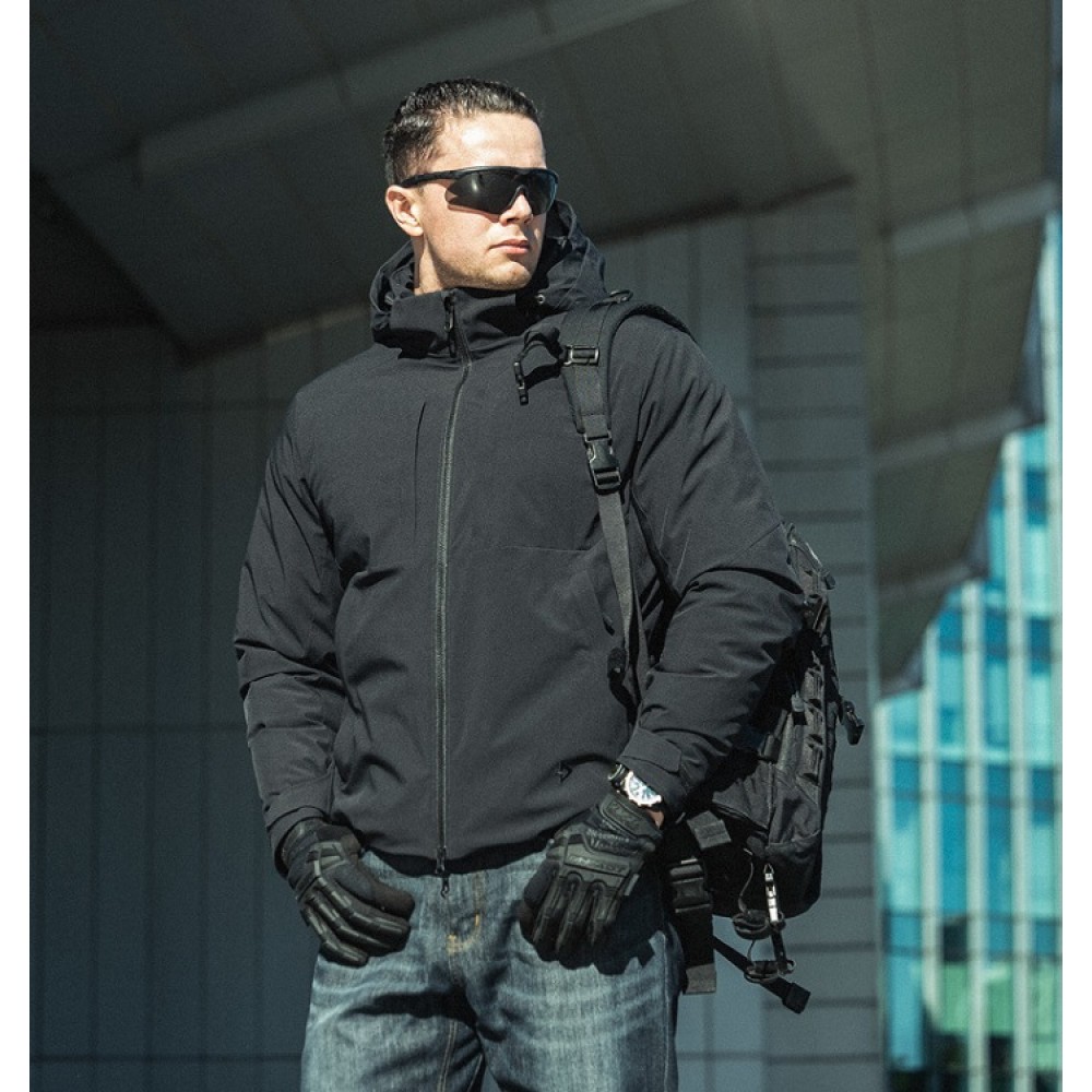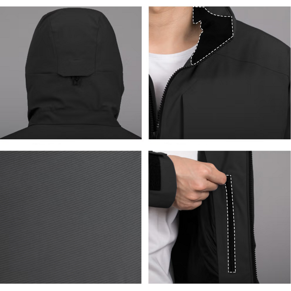 - Двухзамковая фронтальная молния с внутренней шторм-планкой и защитой подбородка.