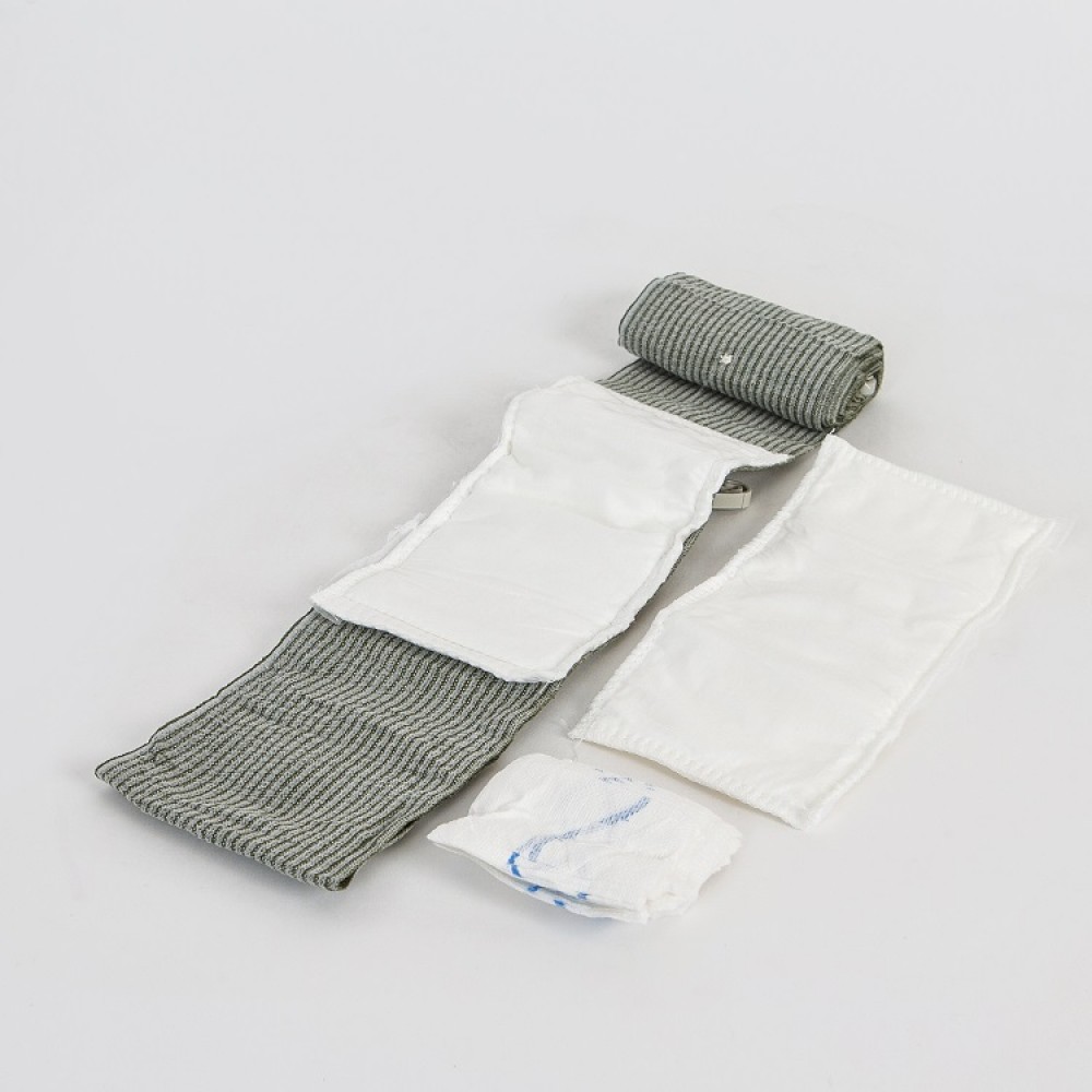 ▫BLOODPACK-К 4" представляет собой эластичный бандаж "израильского" типа шириной 10 см с аппликатором давления и впитывающей подушкой, к которому добавлена отрывная подушка и бинт для тампонирования, пропитанный каолином.