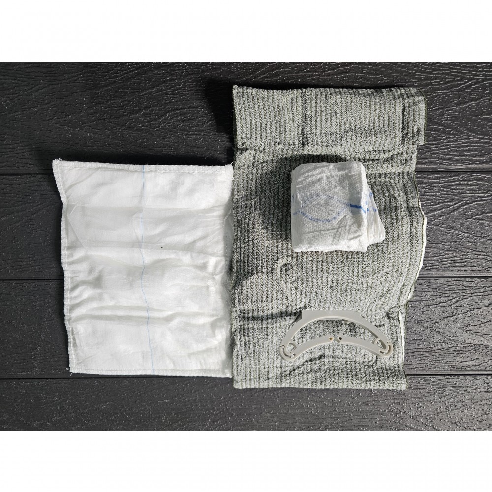 ▫BLOODPACK-К 6" представляет собой эластичный бандаж "израильского" типа шириной 15 см с аппликатором давления и впитывающей подушкой, к которому добавлена отрывная подушка и бинт для тампонирования, пропитанный каолином.