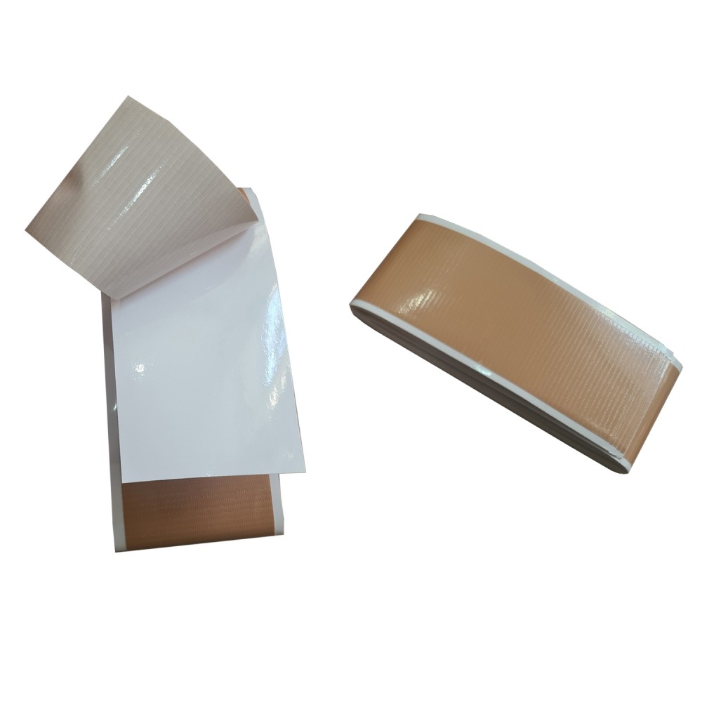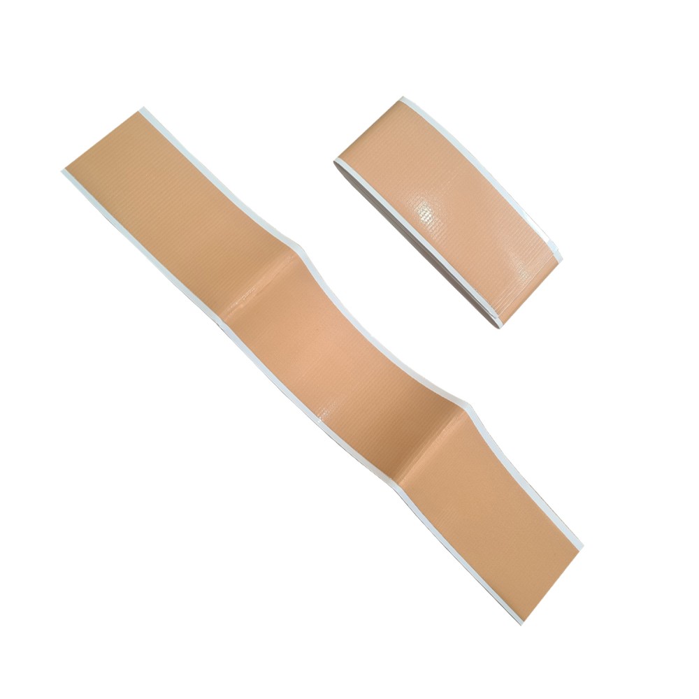 Представляет из себя нарезанную армированную клейкую ленту песочного цвета, поставляемую в отрезках 5х38 см, по 8 полос в упаковке.