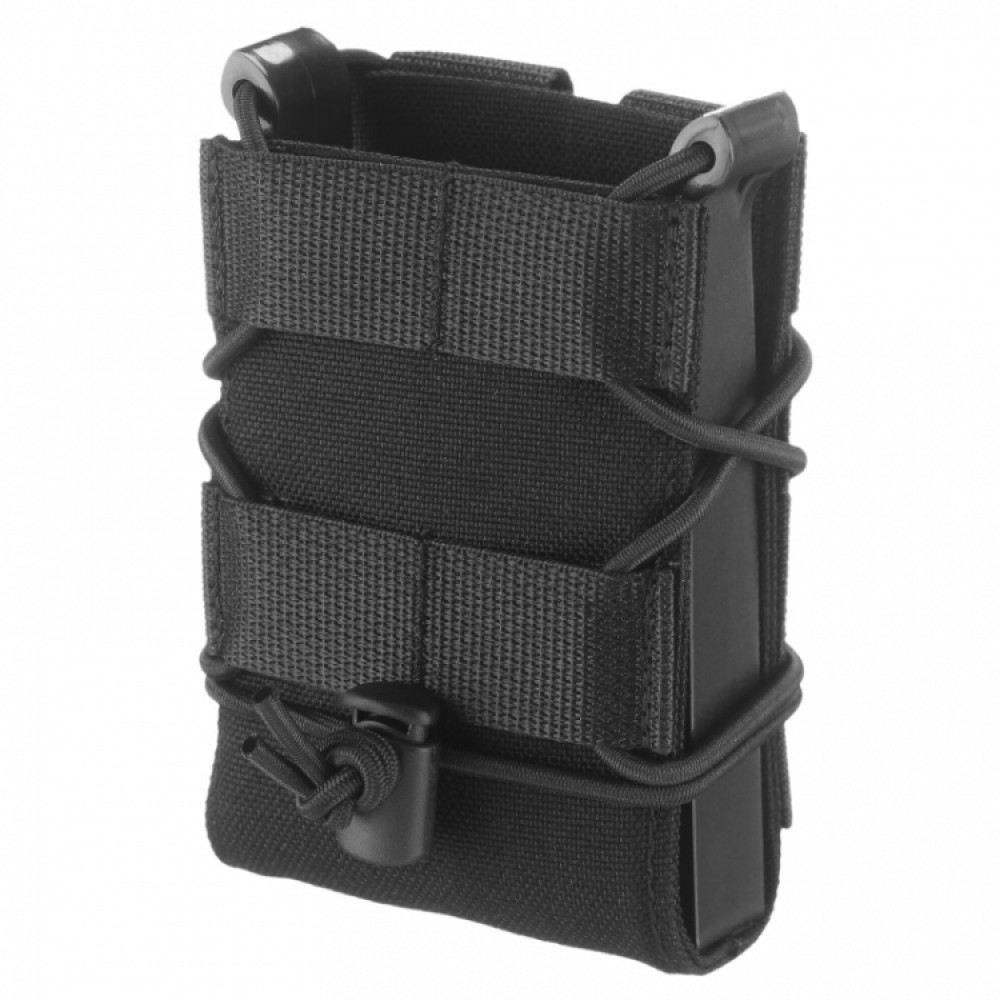- Объём подсумка настраивается с помощью резинового шок-корда, который регулирует степень сжатия пластиковой вставки, что надёжно защищает магазин от утери.