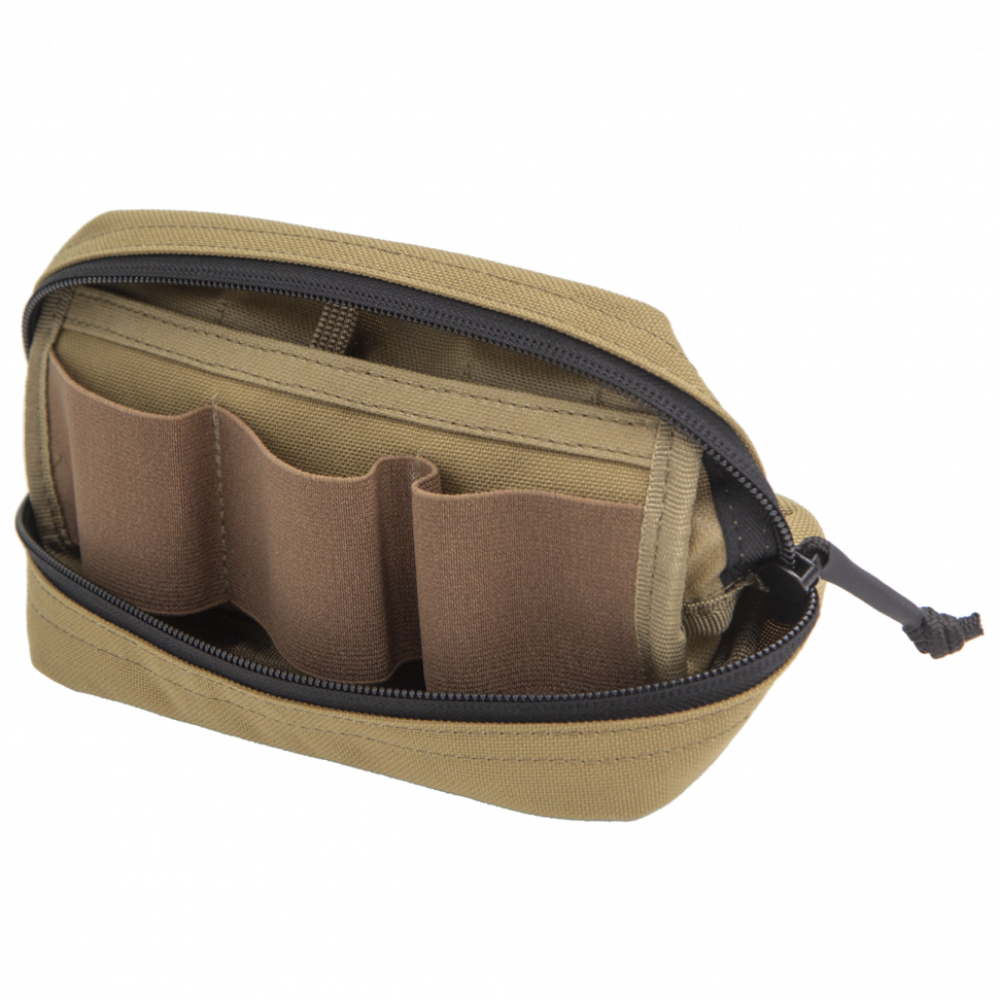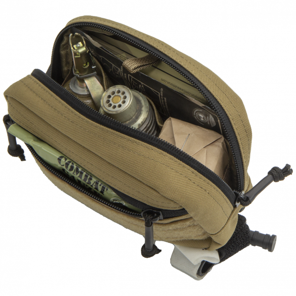 Подсумок предназначен для переноски различного дополнительного снаряжения на бронежилете, разгрузочном жилете или поясе с системой MOLLE;
