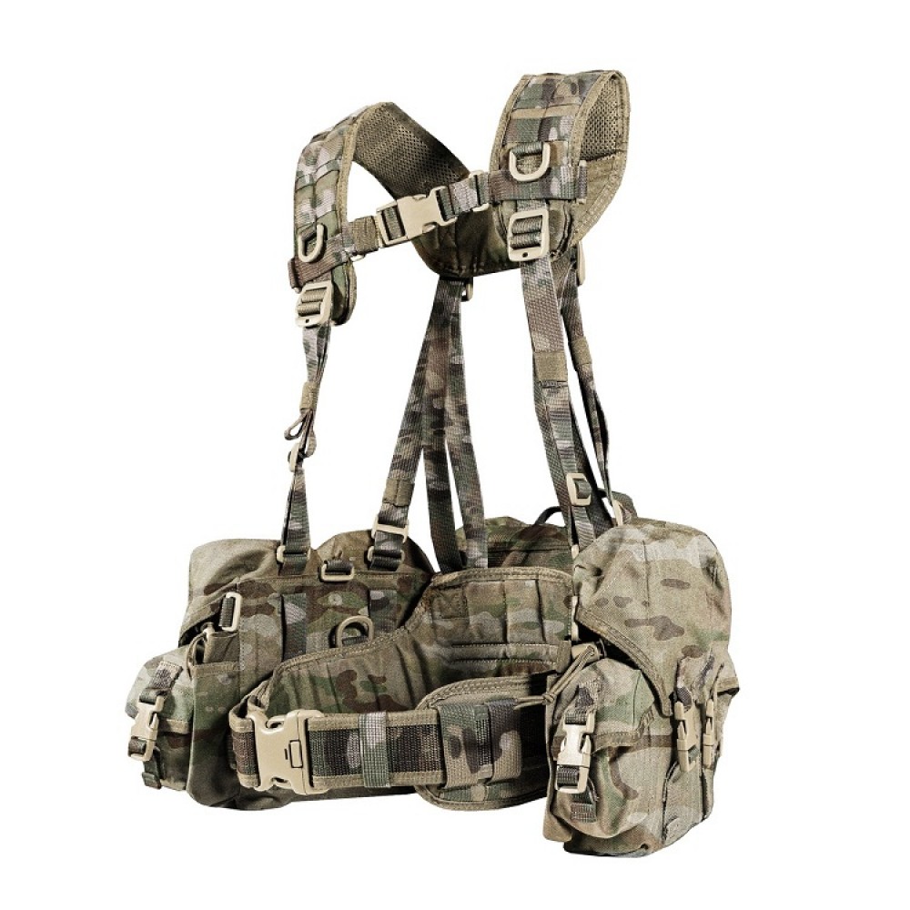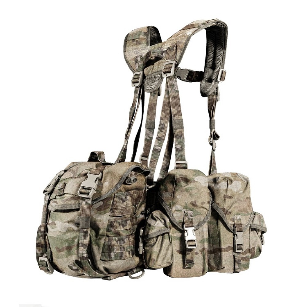 - Дополнительное снаряжение пристёгивается к плечевым поддерживающим лямкам креплением системы PALS / МОLLЕ или крюками-зажимами (клипсами) системы АLIСЕ
