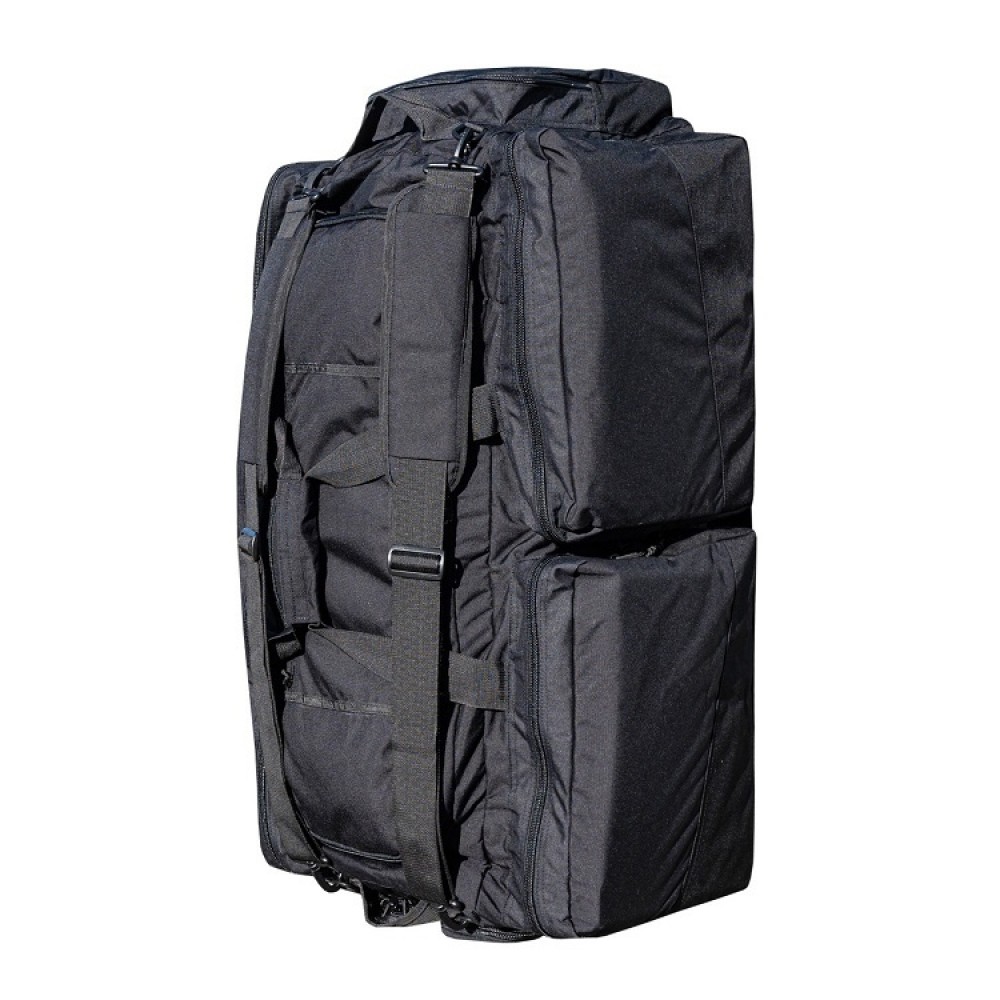 Сумка оснащена регулируемыми рюкзачными лямками с мягким сетчатым подкладом которые позволяют носить сумку, как рюкзак. Лямки крепяться за счет карабинов, при необходимости их можно снять. На внешних торцах размещены ручки-стропы для переноски вдвоем. У основных ручек для переноски расположены D-Ring кольца для крепления дополнительного оборудования или перемещения лямок.