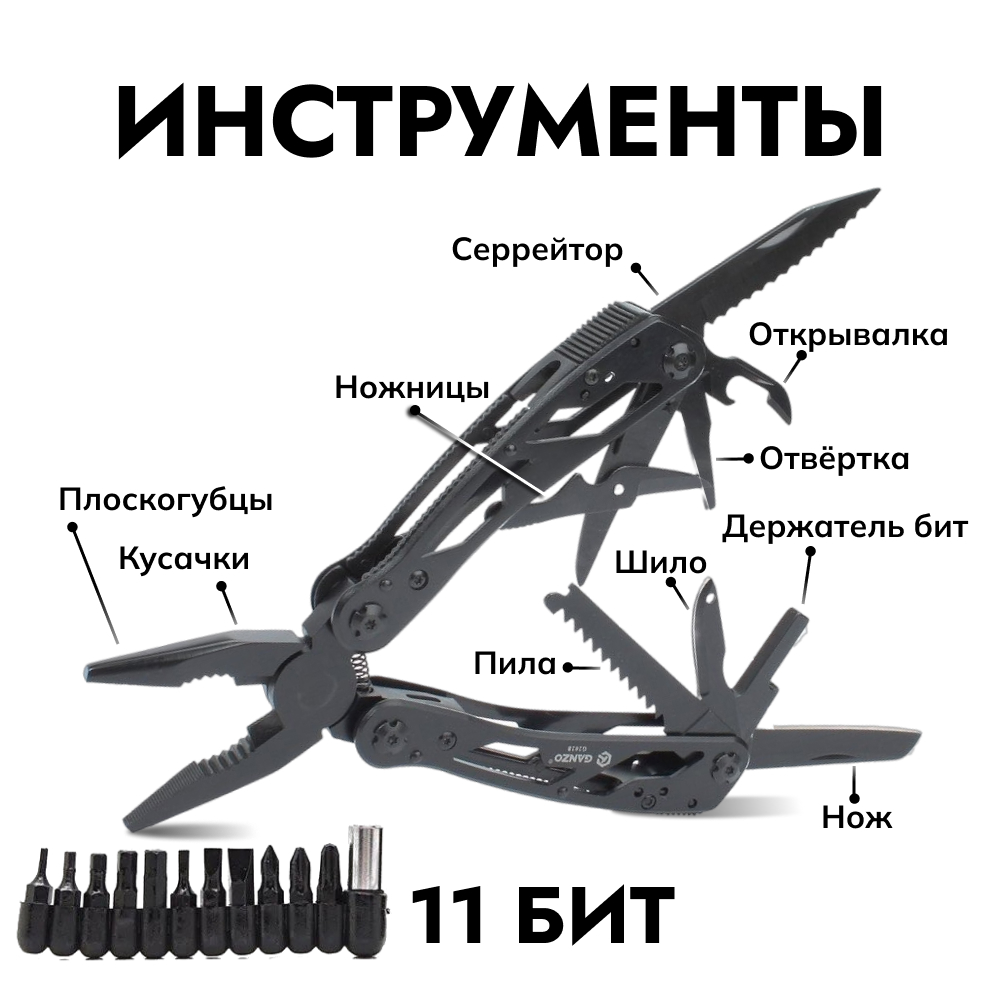 Ganzo G202B — многофункциональный мультитул, который станет незаменимым помощником в квартире, на даче или в путешествии. Инструмент справится со множеством повседневных и туристических задач: мелкий ремонт, установка крепежей, зачистка проводов, распил древесины или приготовление пищи на природе.